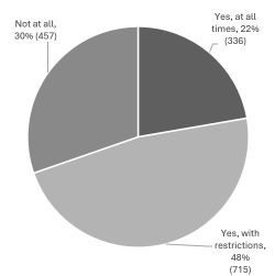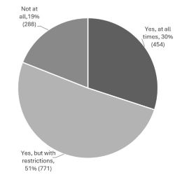 454 answered yes, 771 answered yes but with restrictions, 288 did not think they should be allowed on the beach.